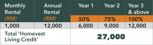 There will be 3 tiers of ‘Homevest Living Credit’ conversion incentive. Table below is an illustration of the incentive: